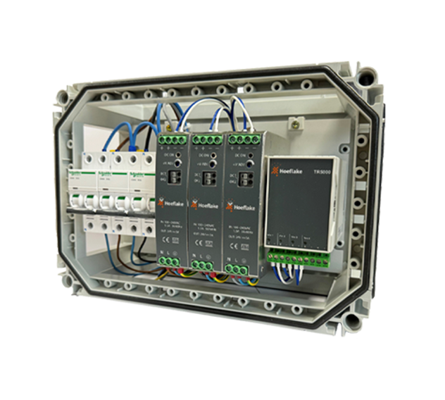 Complete 24VDC voedingseenheid voor PRO-TEC 5000 inclusief Best-of-Three schakeling. De Best-of-Three voedingseenheid bestaat uit 3 losse voedingen die elk door een eigen 1P+N automaat beveiligd zijn.